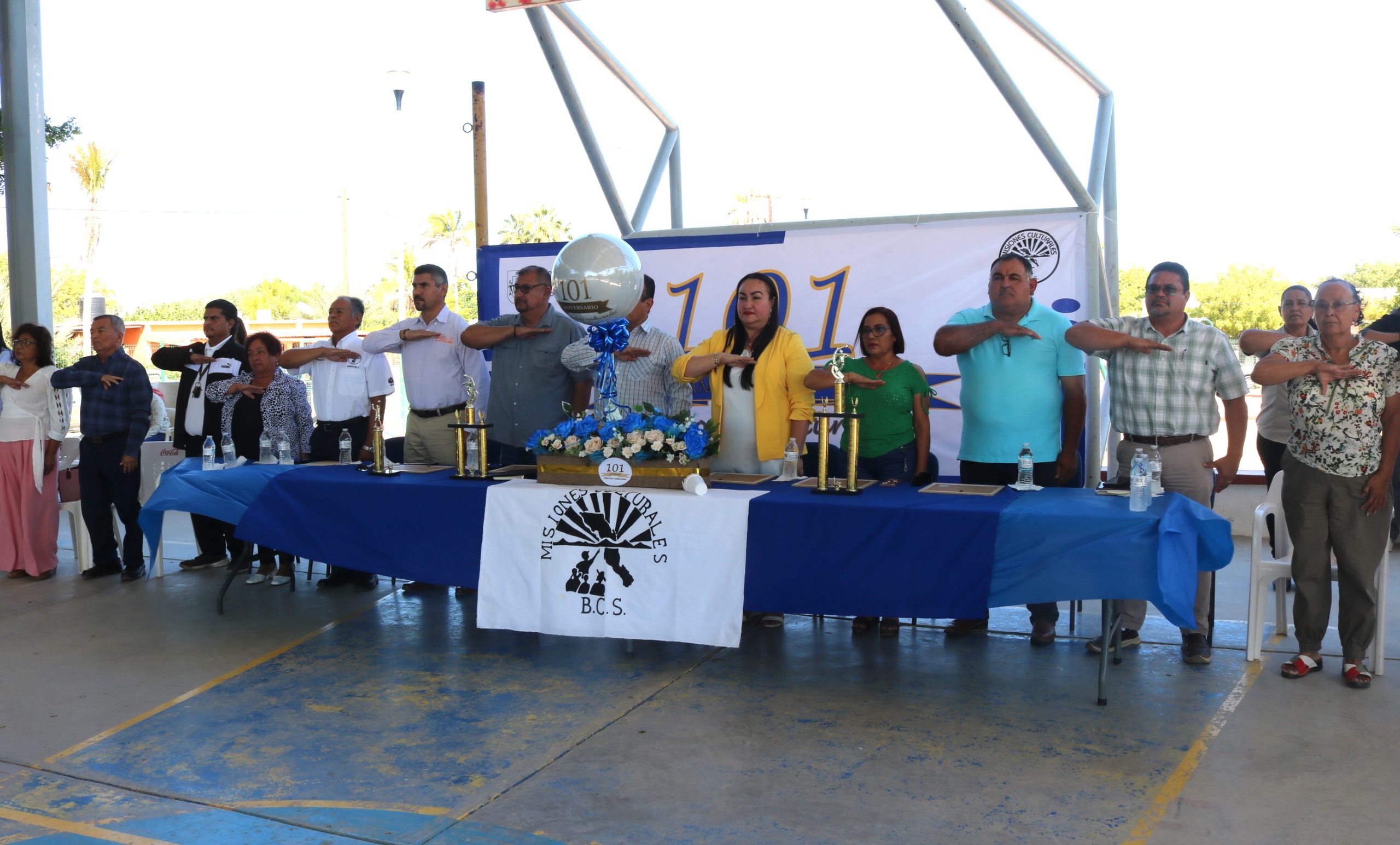 En la plaza cívica del ejido Juan Domínguez Cota, en el municipio de La Paz,...